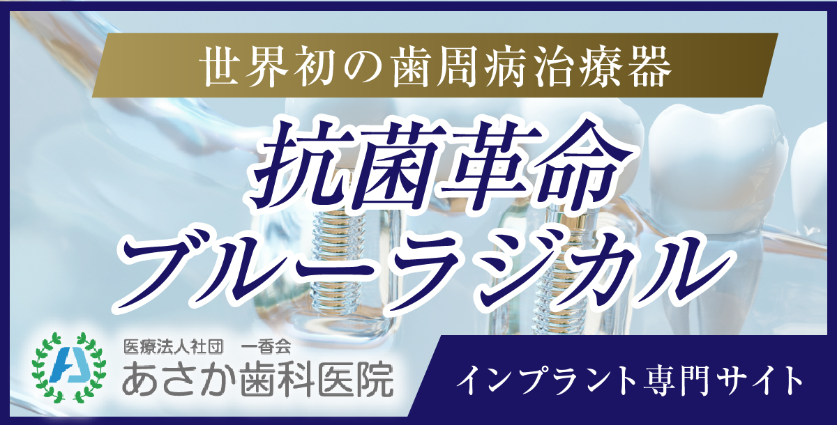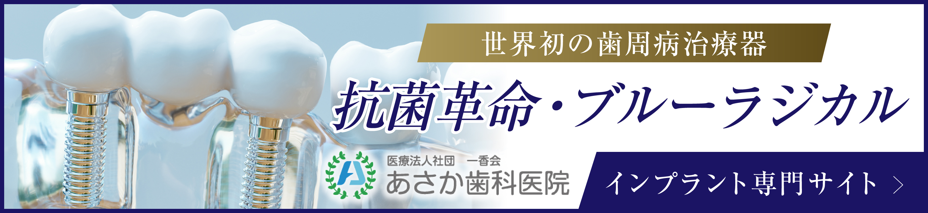青色光と過酸化水素水を使ったラジカル殺菌により歯周ポケット内を99.99%殺菌し、外科処置を避けながら重度の歯周病にも対応できる最新の治療法です。